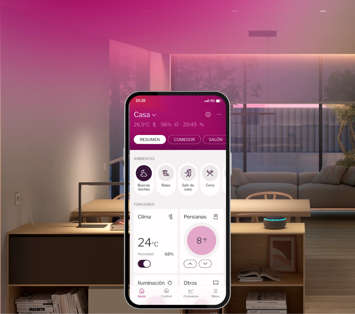 Descubre las soluciones smart que hacen que tu hogar conecte contigo a través de S360, la app Simon LOLA y tu asistente de voz.