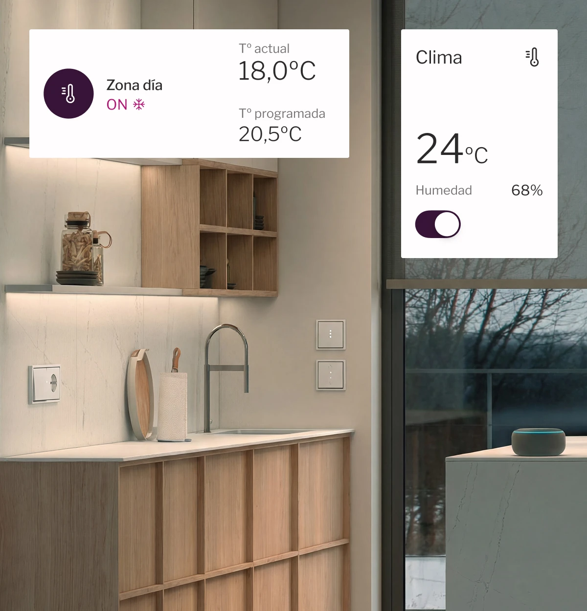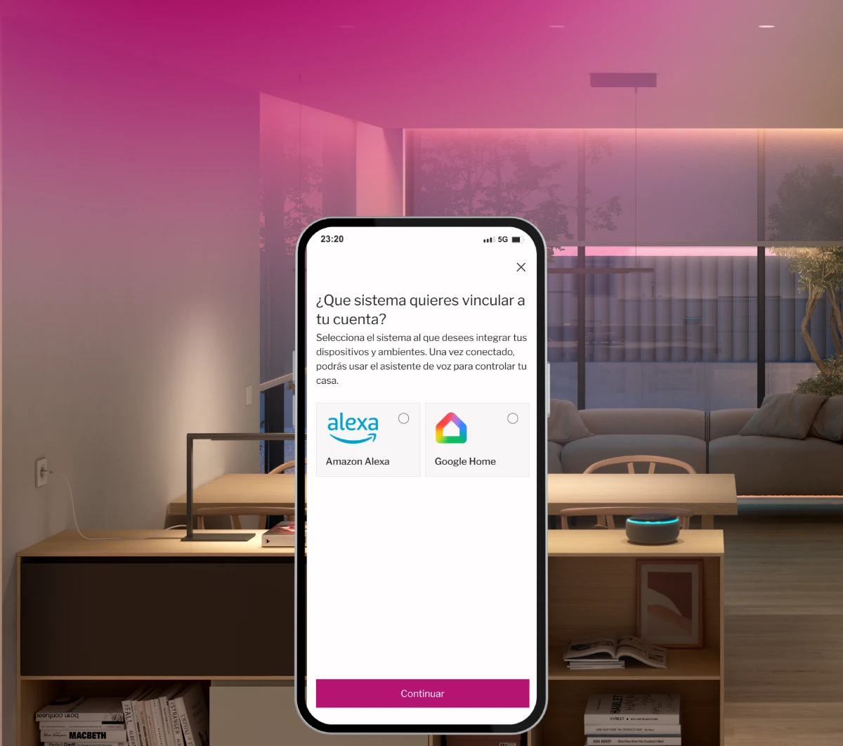 Crea ambientes en un segundo unificando luz, clima y dispositivos según el uso del espacio.