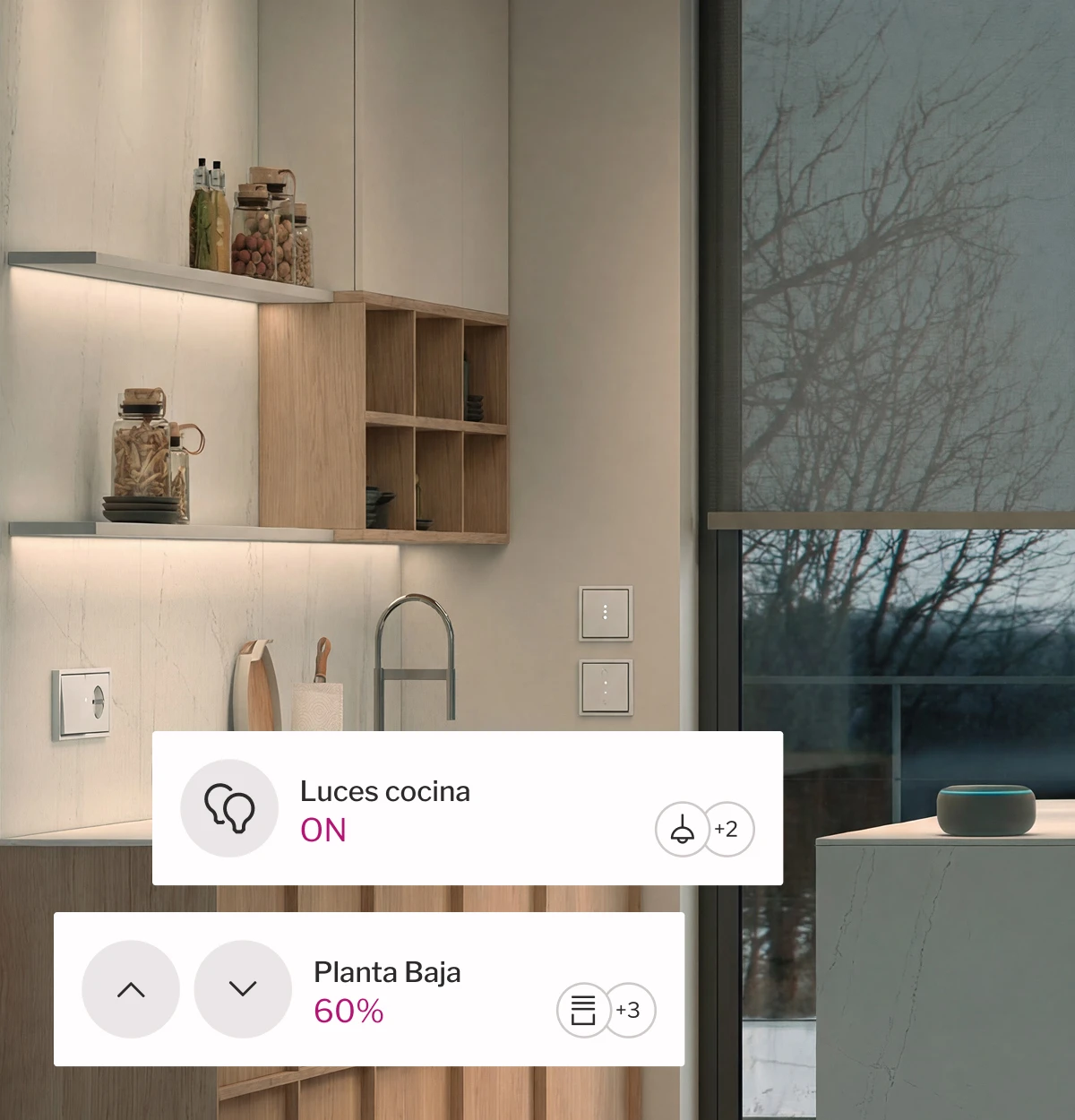 Centraliza persianas y estores en una sola tecla y adapta la luz natural a tu día a día.
